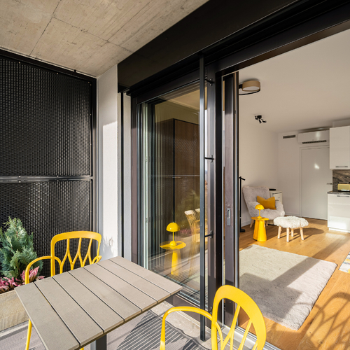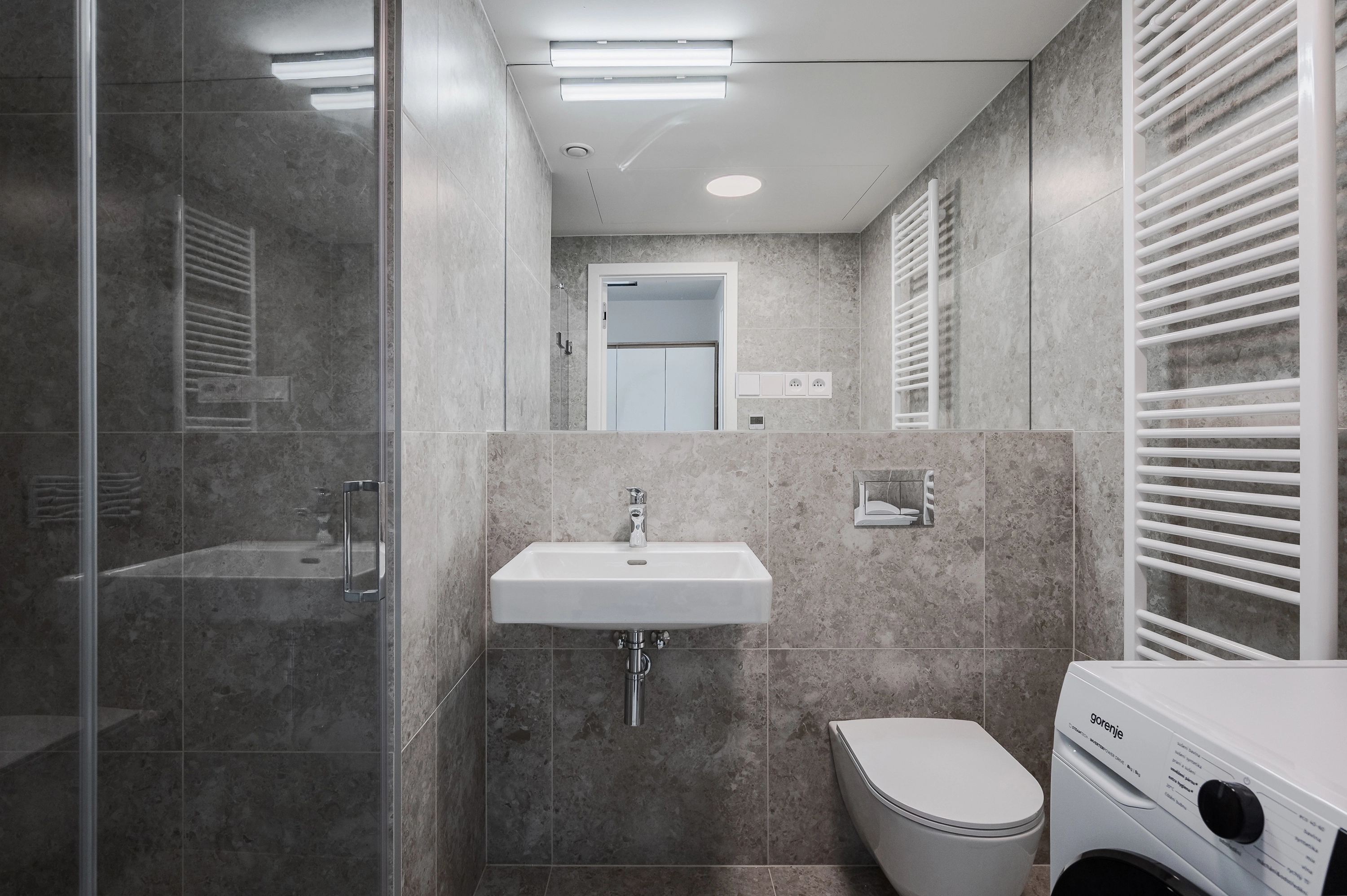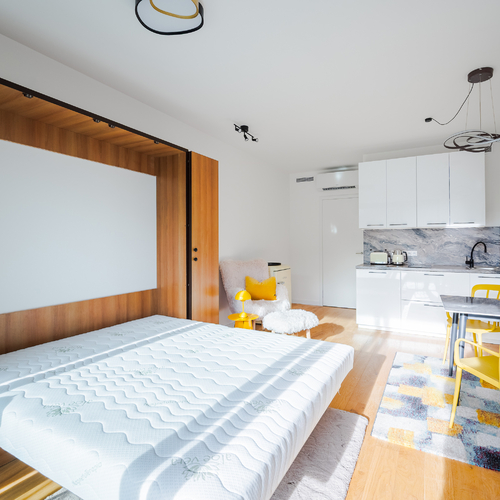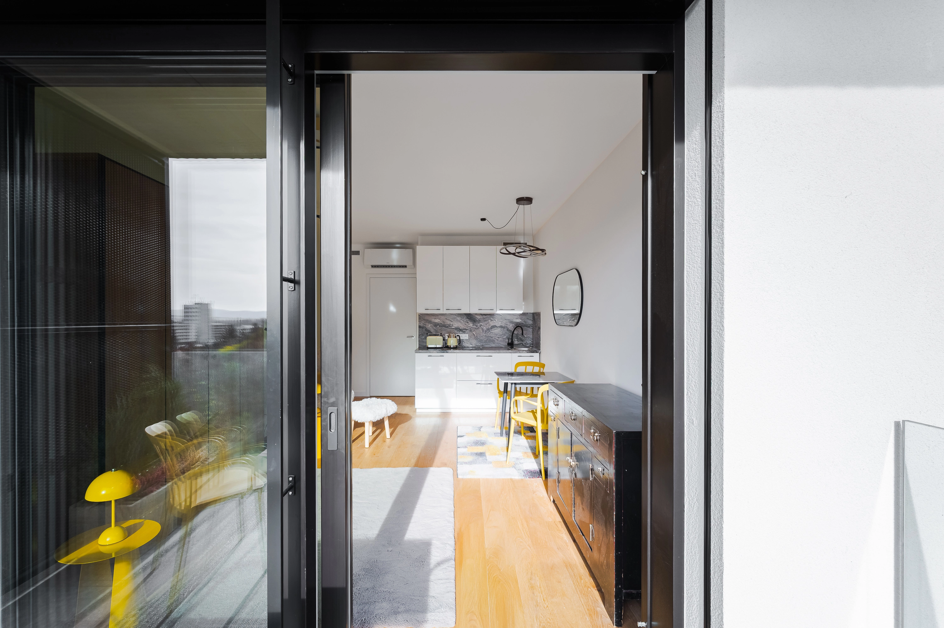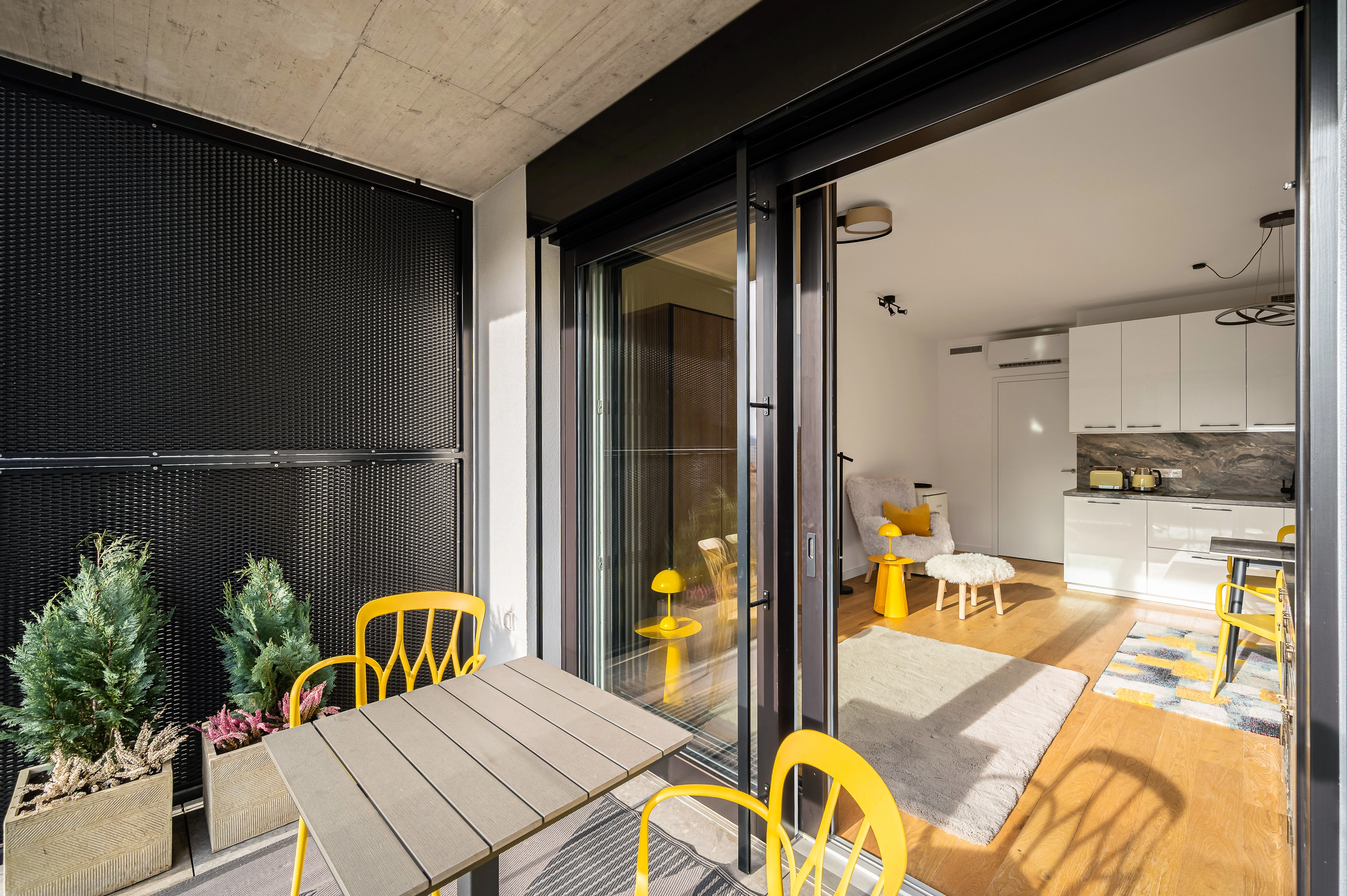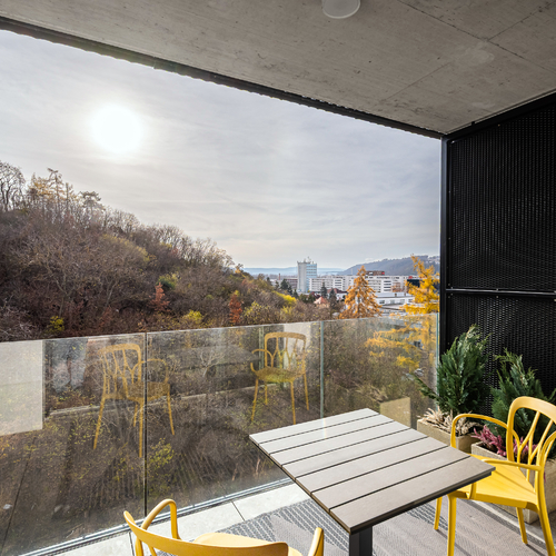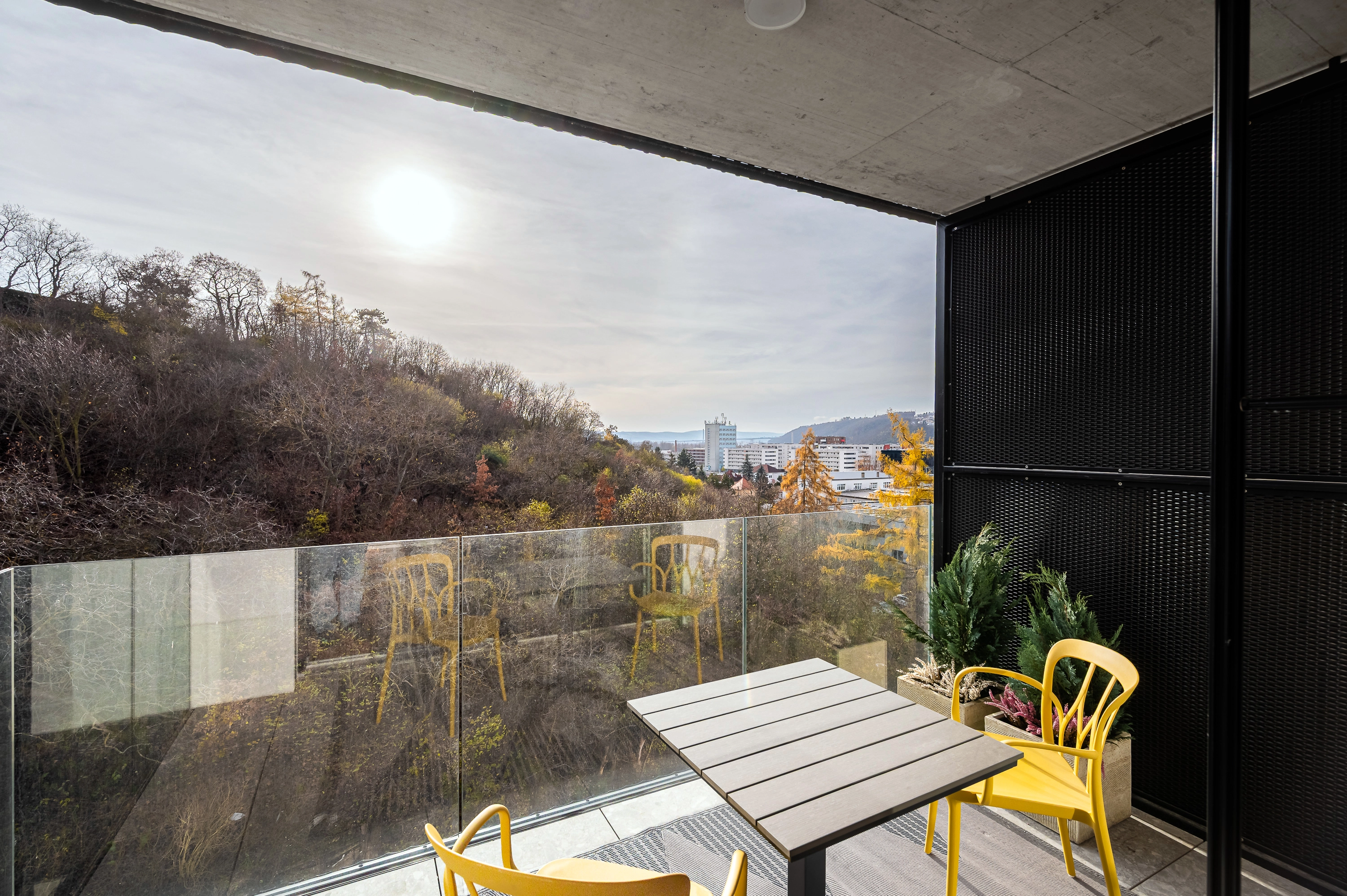 Byt je orientován na jižní stranu, nabízí velmi vysoké standardy bydlení, jako dřevěné podlahy, klimatizace, smart home (ovládaní bytu přes tablet) a společné prostory domu jako střešní terasa s posezením a místem na grilování. Součástí pronájmu je také vstup podzemní chodbou do zázemí vedlejšího projektu Vanguard Lofts a jejich překrásného SPA. Najdete zde dvě sauny, velký bazén, odpočinkovou místnost, vířivku a jiné. To vše z pohodlí vašeho bytu.