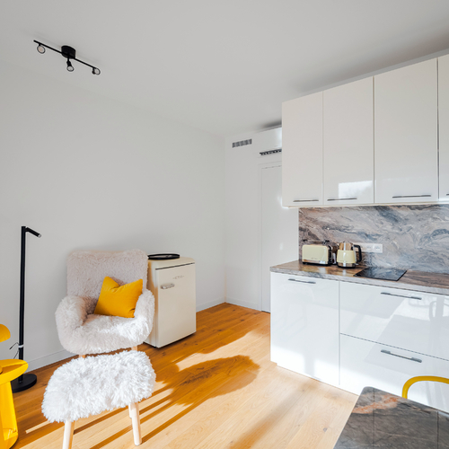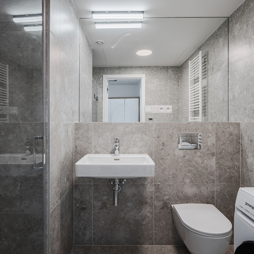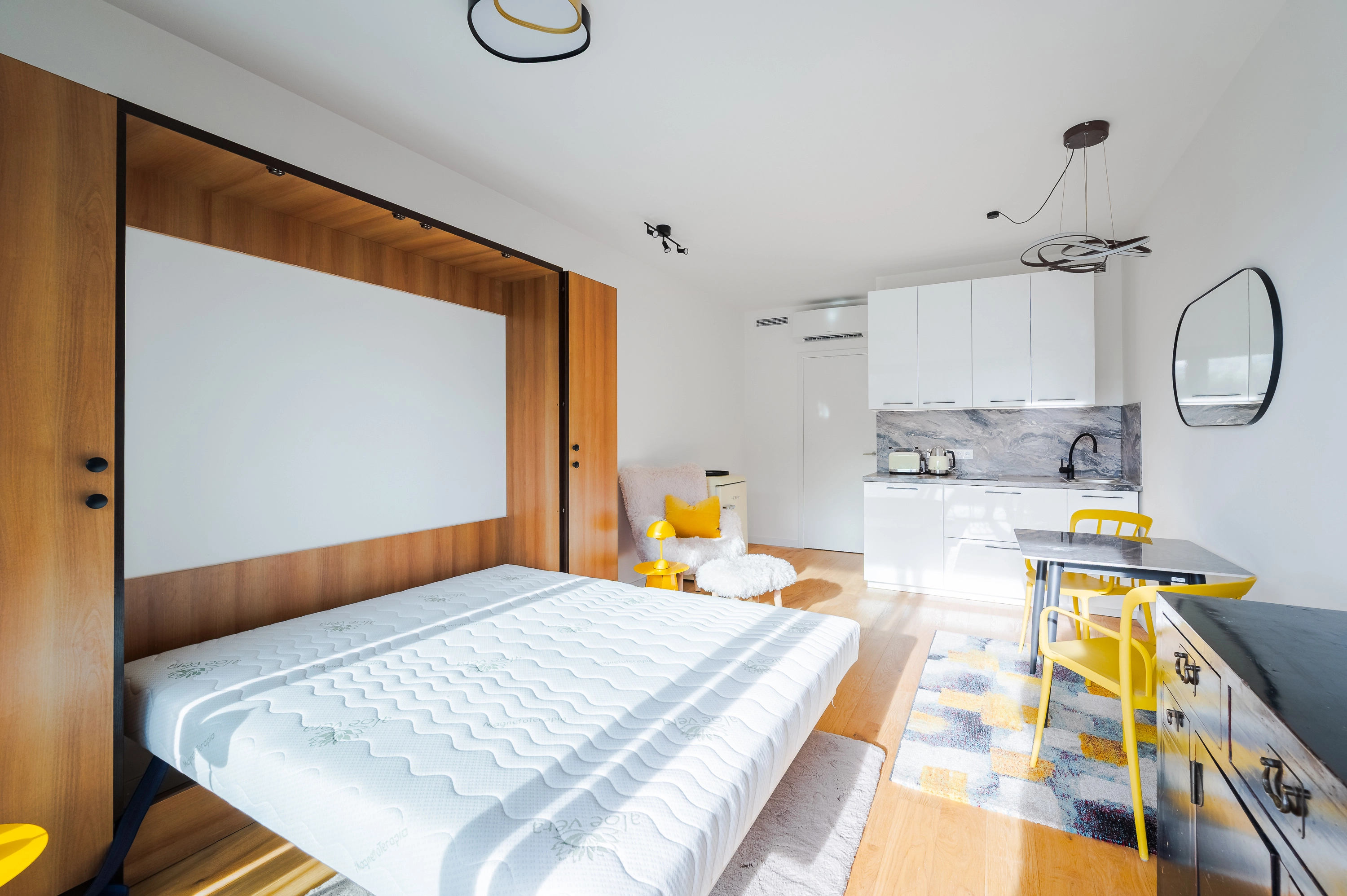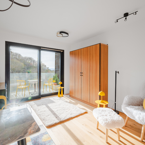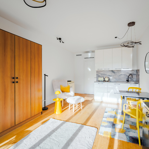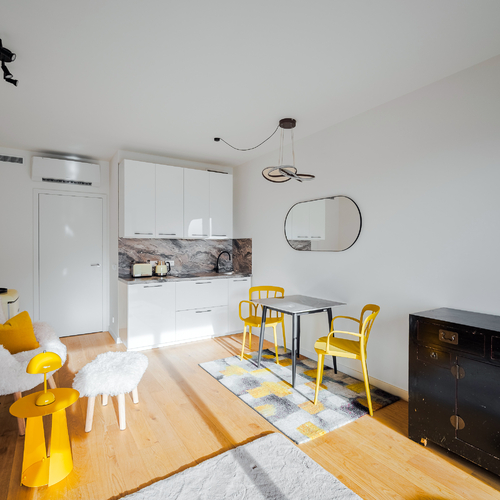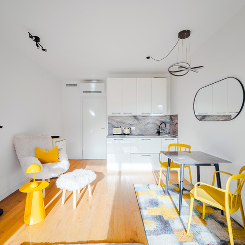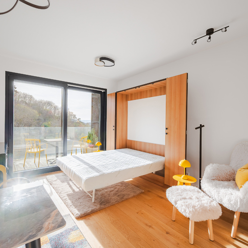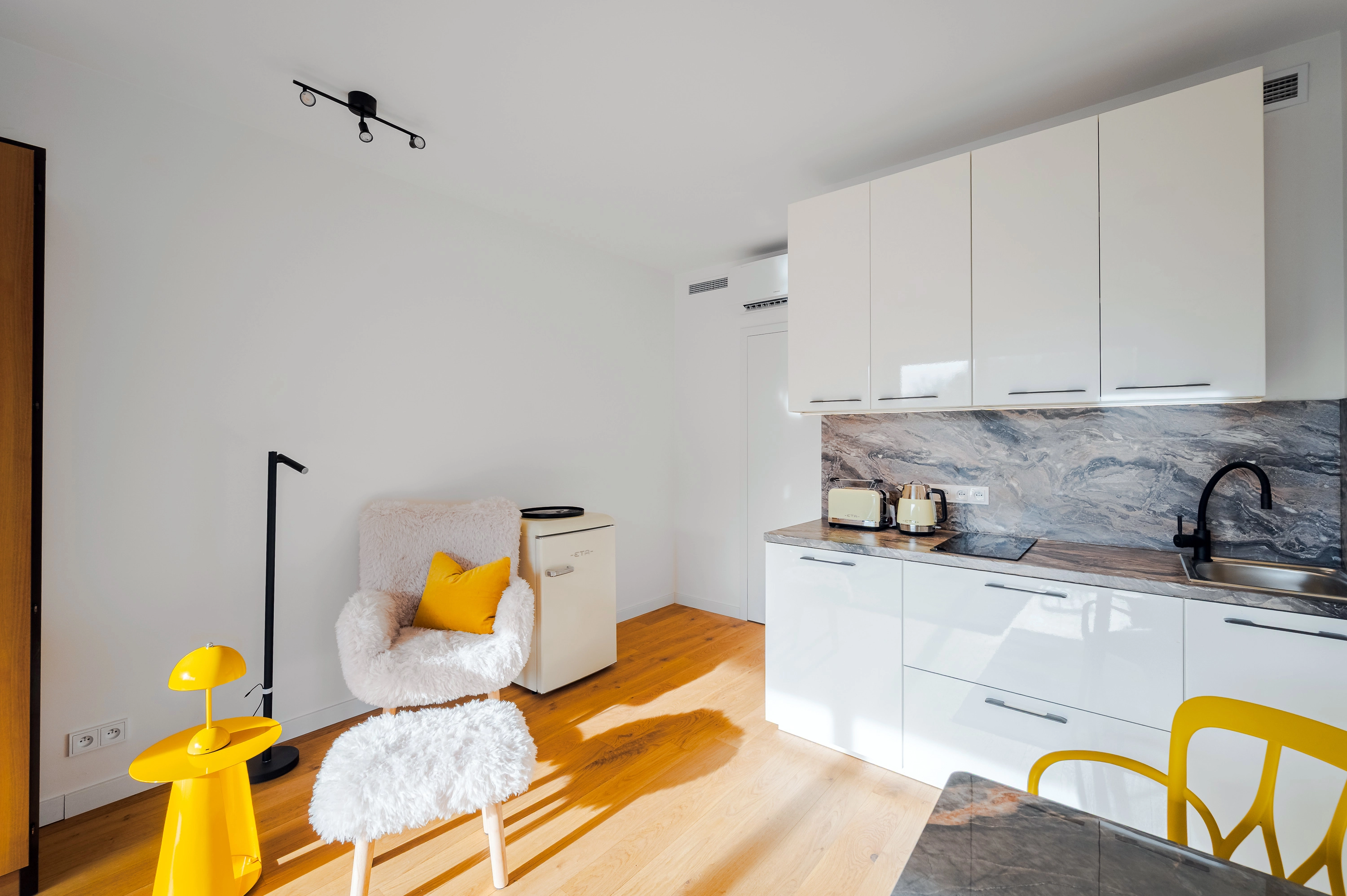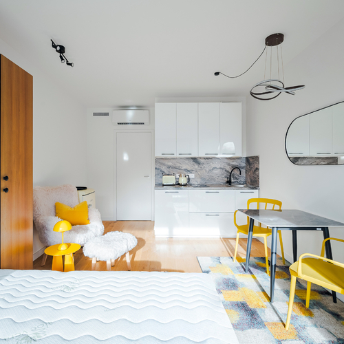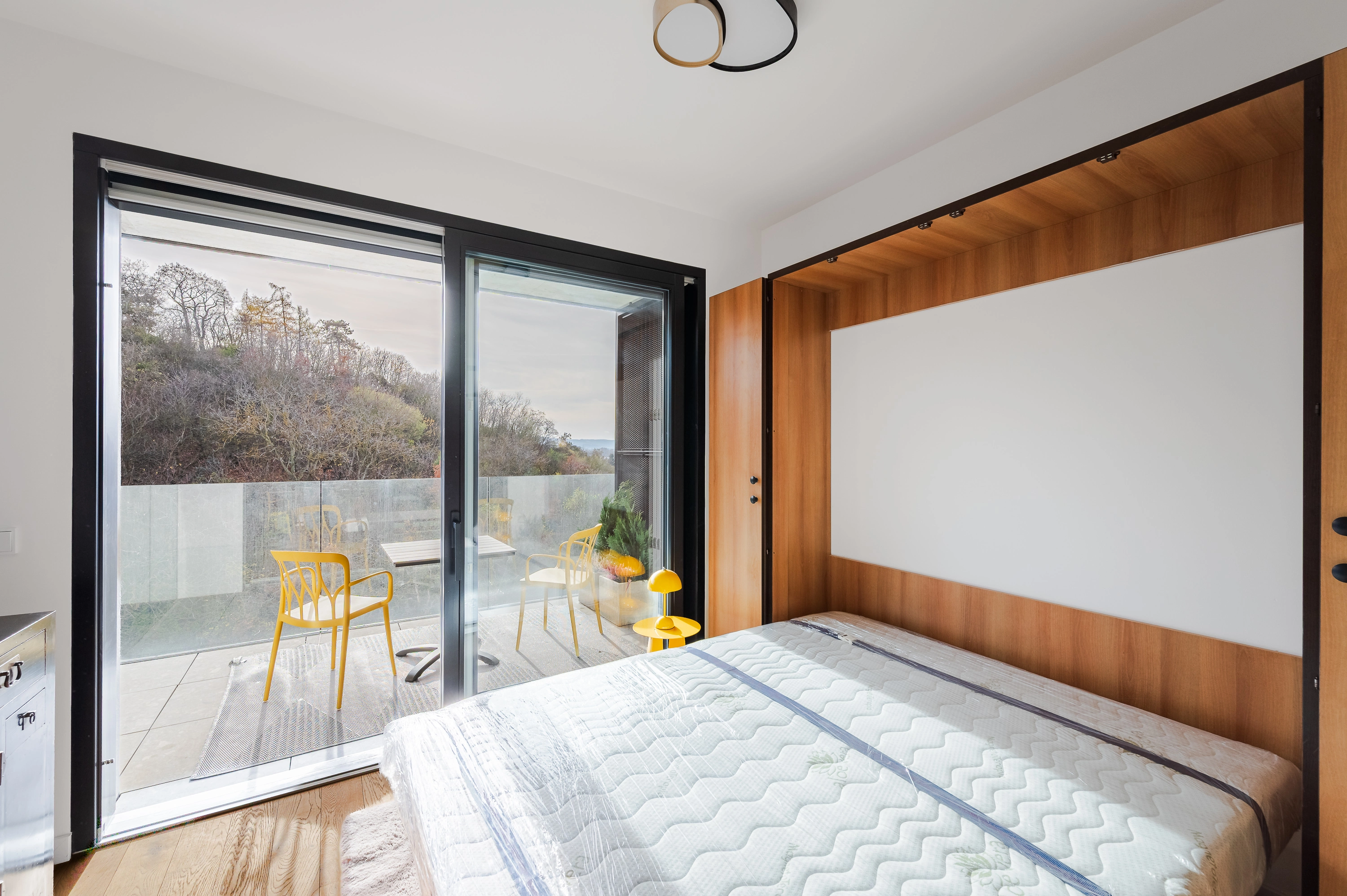 Byt je orientován na jižní stranu, nabízí velmi vysoké standardy bydlení, jako dřevěné podlahy, klimatizace, smart home (ovládaní bytu přes tablet) a společné prostory domu jako střešní terasa s posezením a místem na grilování. Součástí pronájmu je také vstup podzemní chodbou do zázemí vedlejšího projektu Vanguard Lofts a jejich překrásného SPA. Najdete zde dvě sauny, velký bazén, odpočinkovou místnost, vířivku a jiné. To vše z pohodlí vašeho bytu.