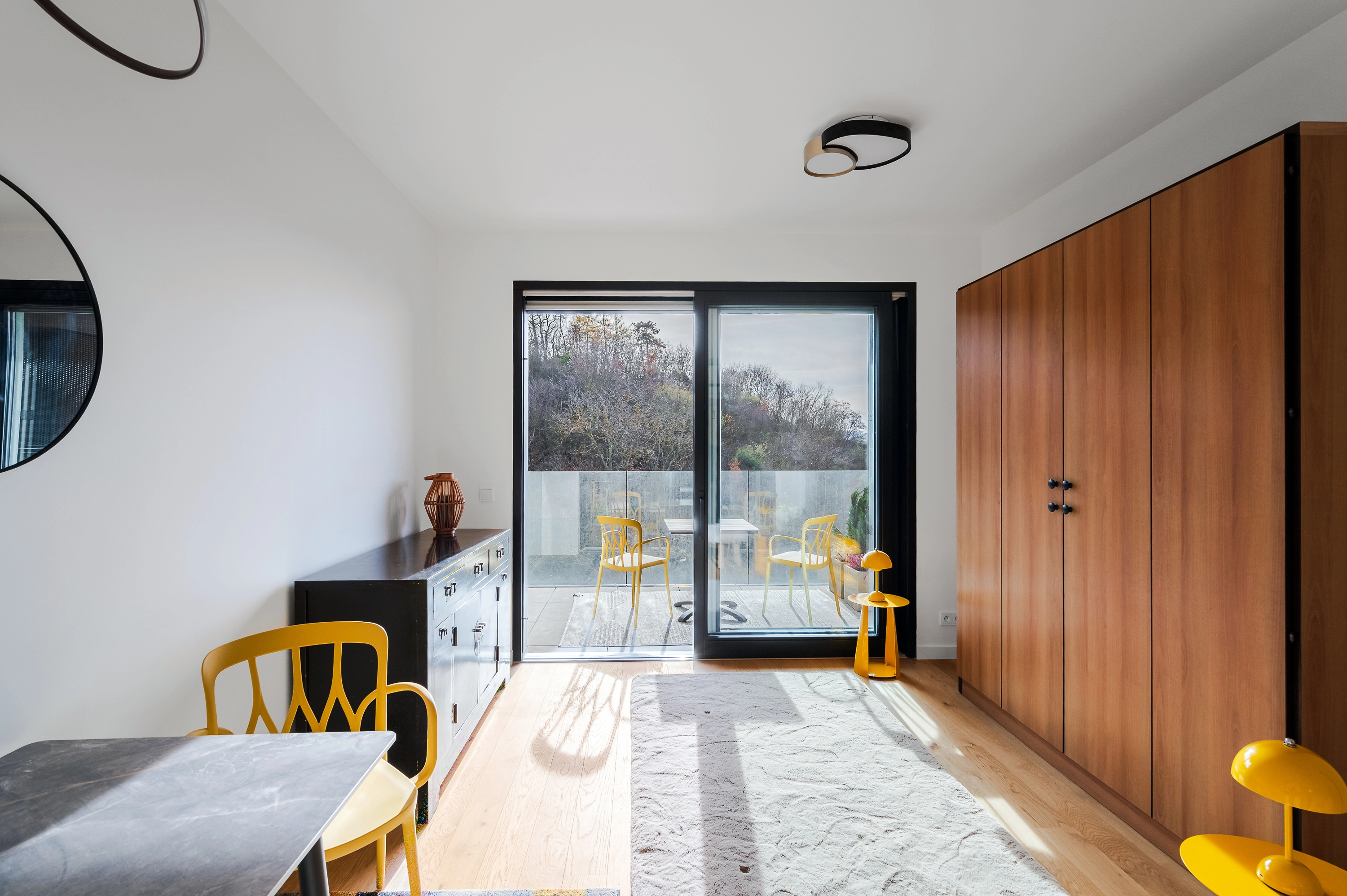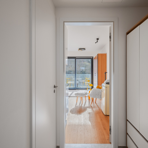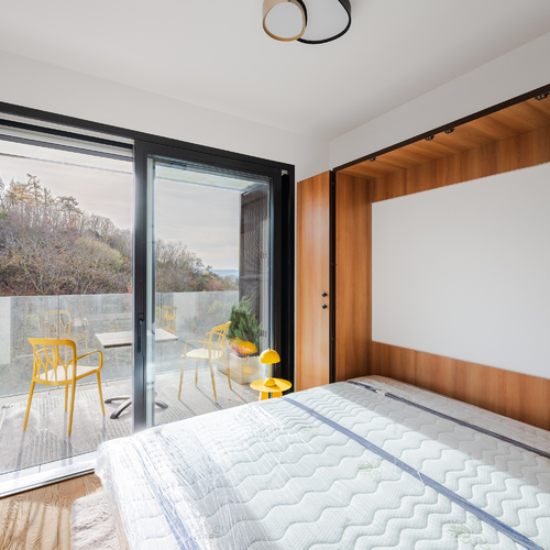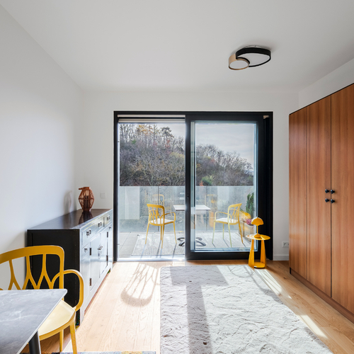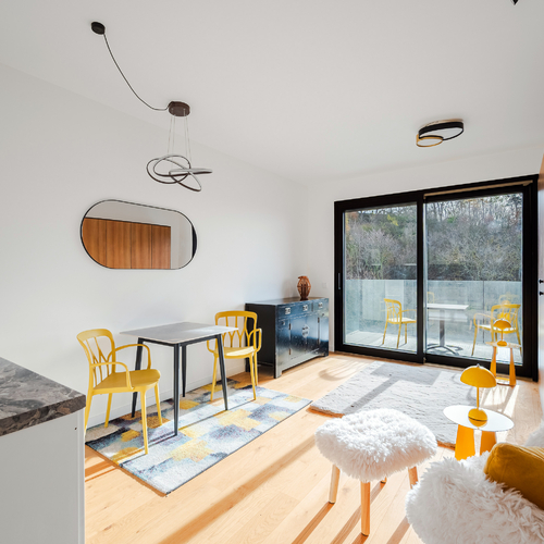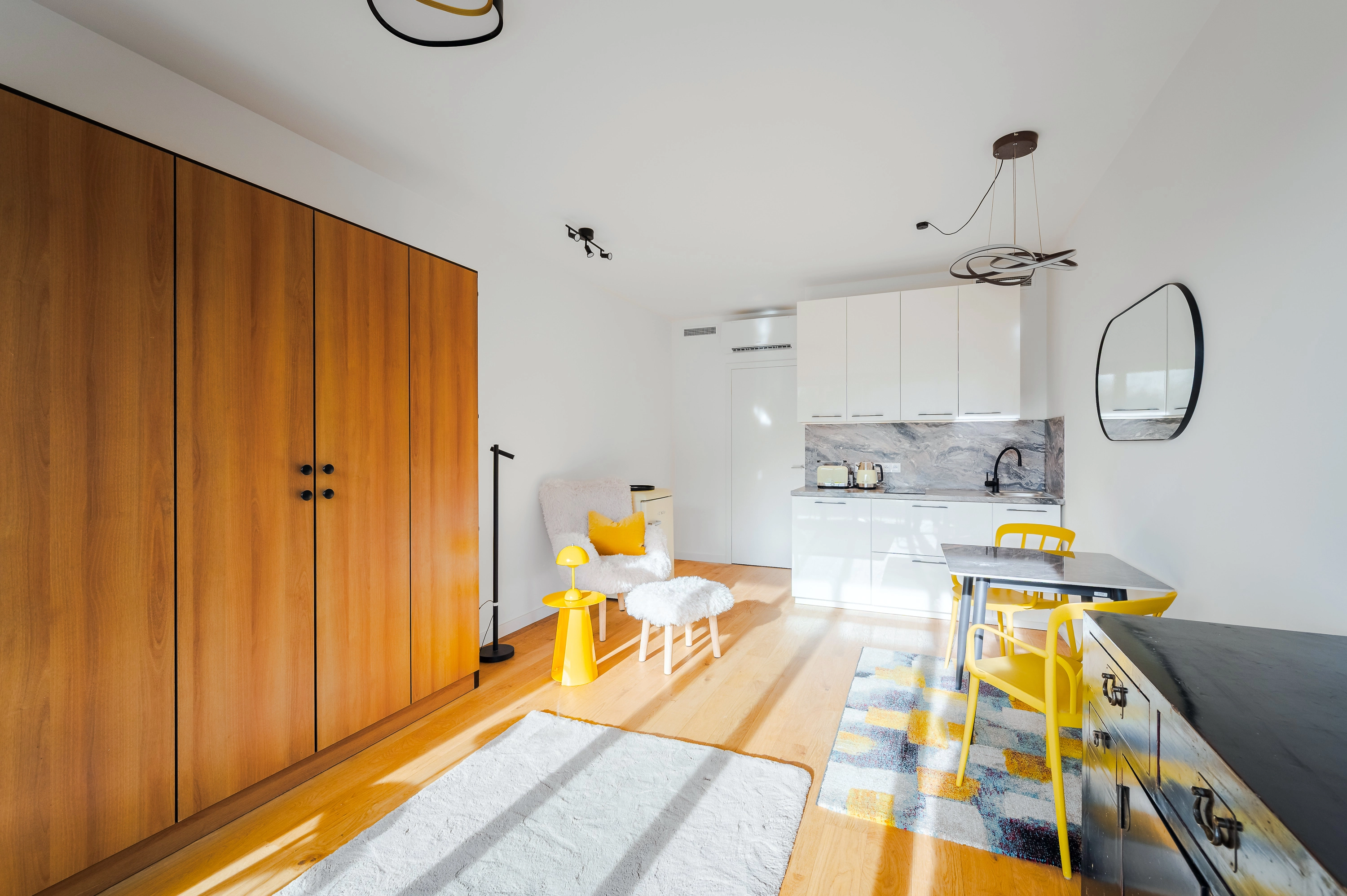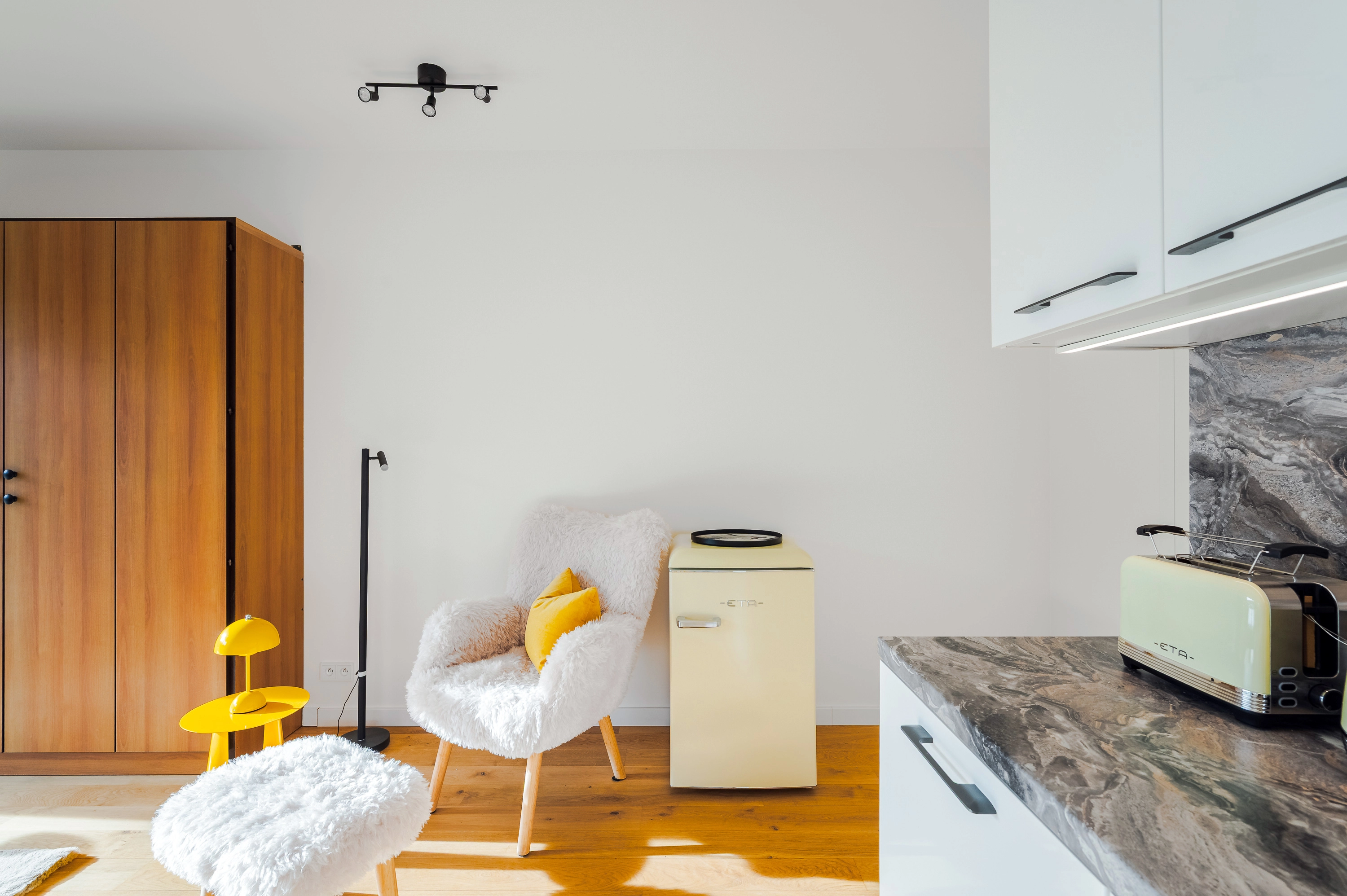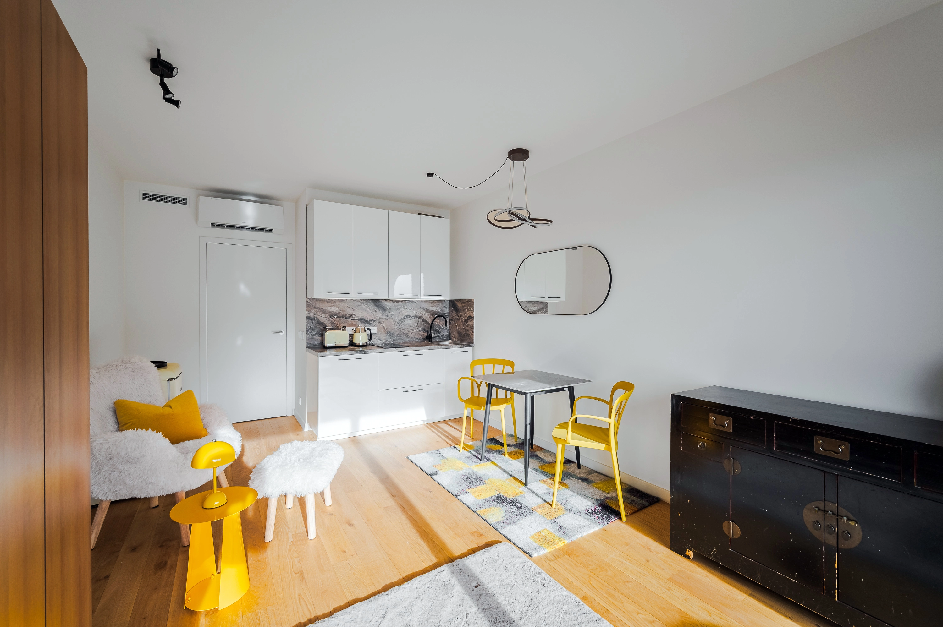 Byt je orientován na jižní stranu, nabízí velmi vysoké standardy bydlení, jako dřevěné podlahy, klimatizace, smart home (ovládaní bytu přes tablet) a společné prostory domu jako střešní terasa s posezením a místem na grilování. Součástí pronájmu je také vstup podzemní chodbou do zázemí vedlejšího projektu Vanguard Lofts a jejich překrásného SPA. Najdete zde dvě sauny, velký bazén, odpočinkovou místnost, vířivku a jiné. To vše z pohodlí vašeho bytu.