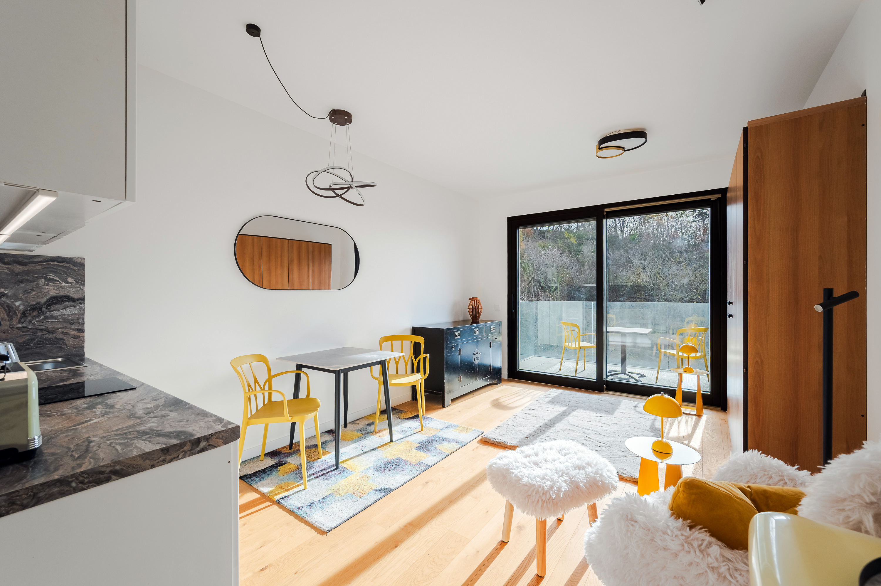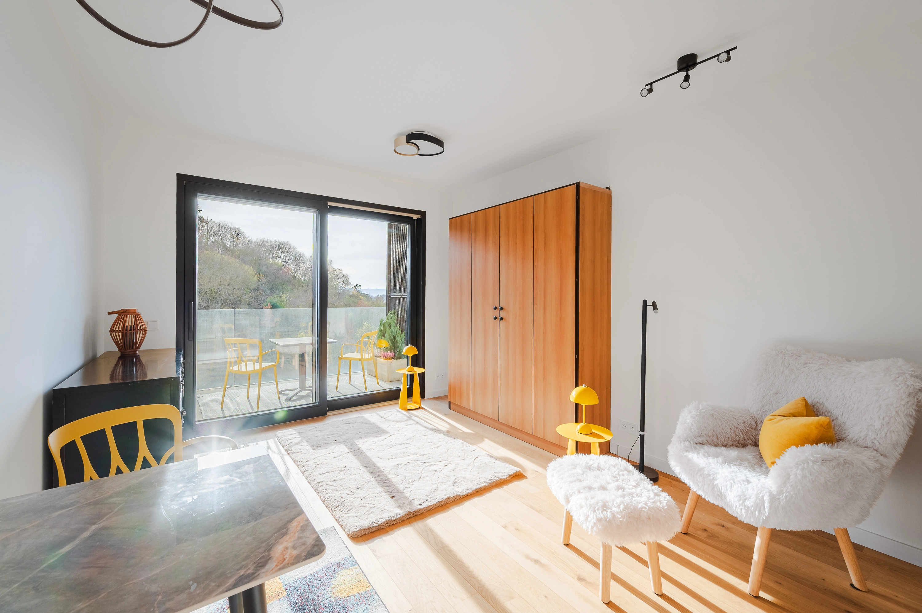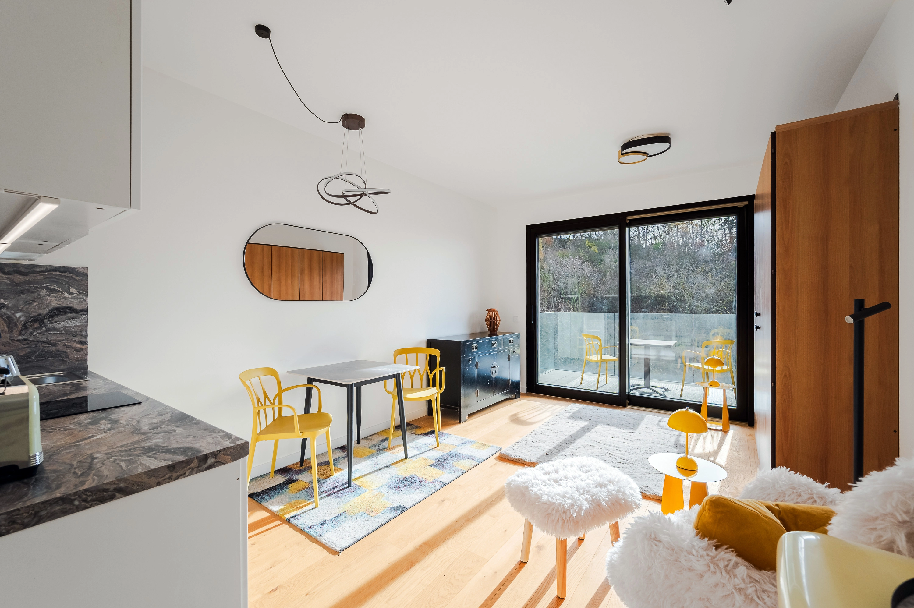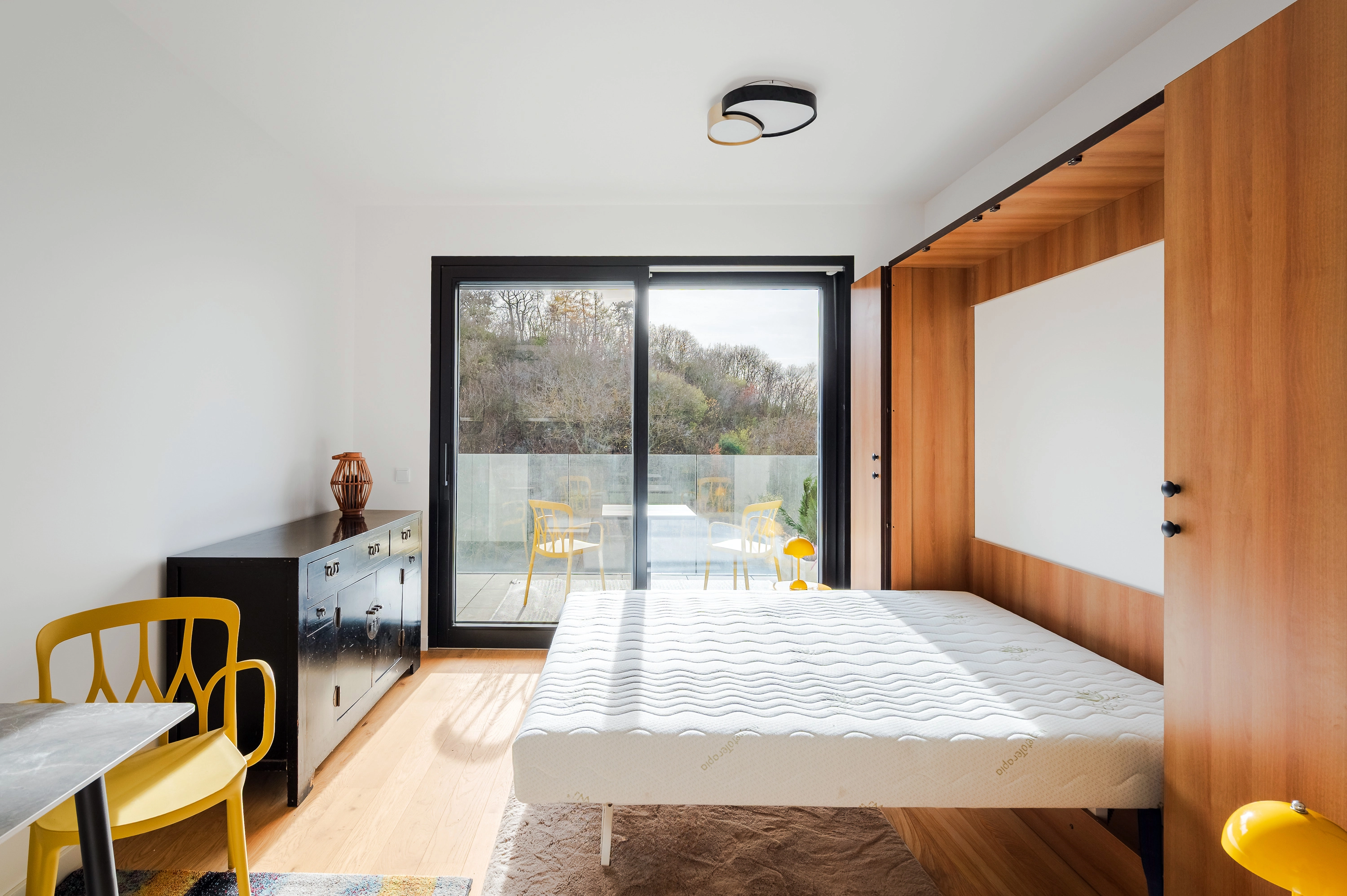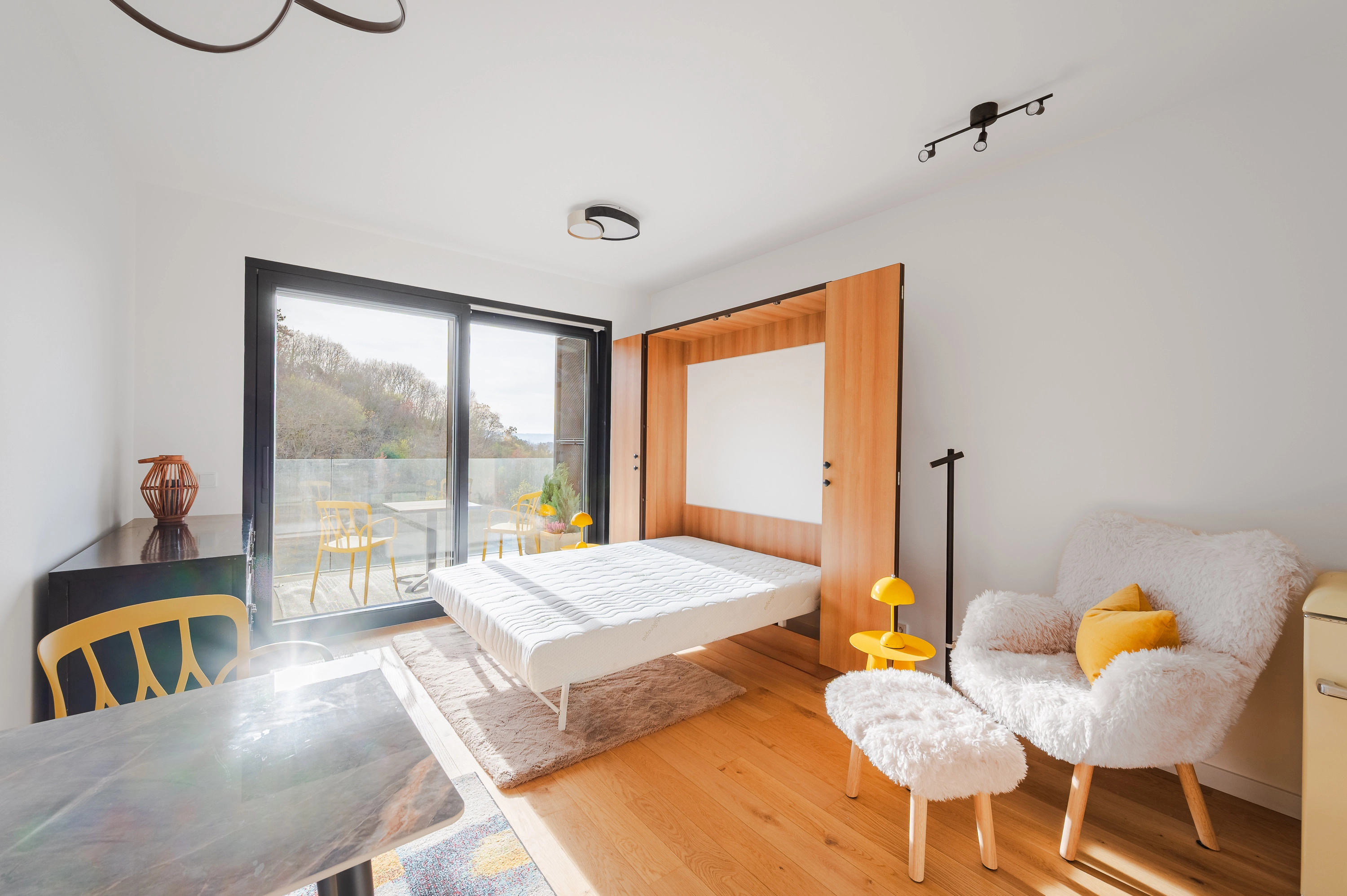 Byt je orientován na jižní stranu, nabízí velmi vysoké standardy bydlení, jako dřevěné podlahy, klimatizace, smart home (ovládaní bytu přes tablet) a společné prostory domu jako střešní terasa s posezením a místem na grilování. Součástí pronájmu je také vstup podzemní chodbou do zázemí vedlejšího projektu Vanguard Lofts a jejich překrásného SPA. Najdete zde dvě sauny, velký bazén, odpočinkovou místnost, vířivku a jiné. To vše z pohodlí vašeho bytu.