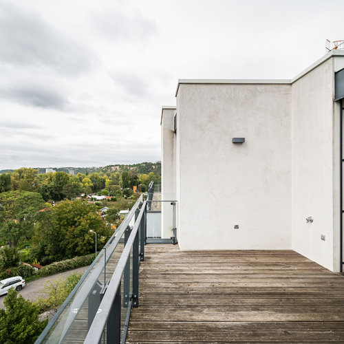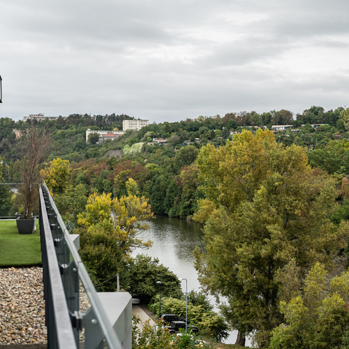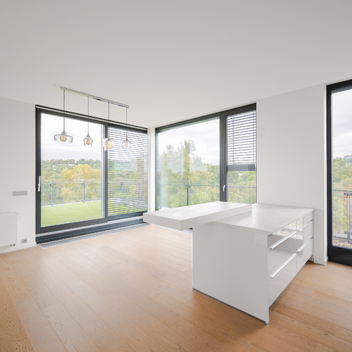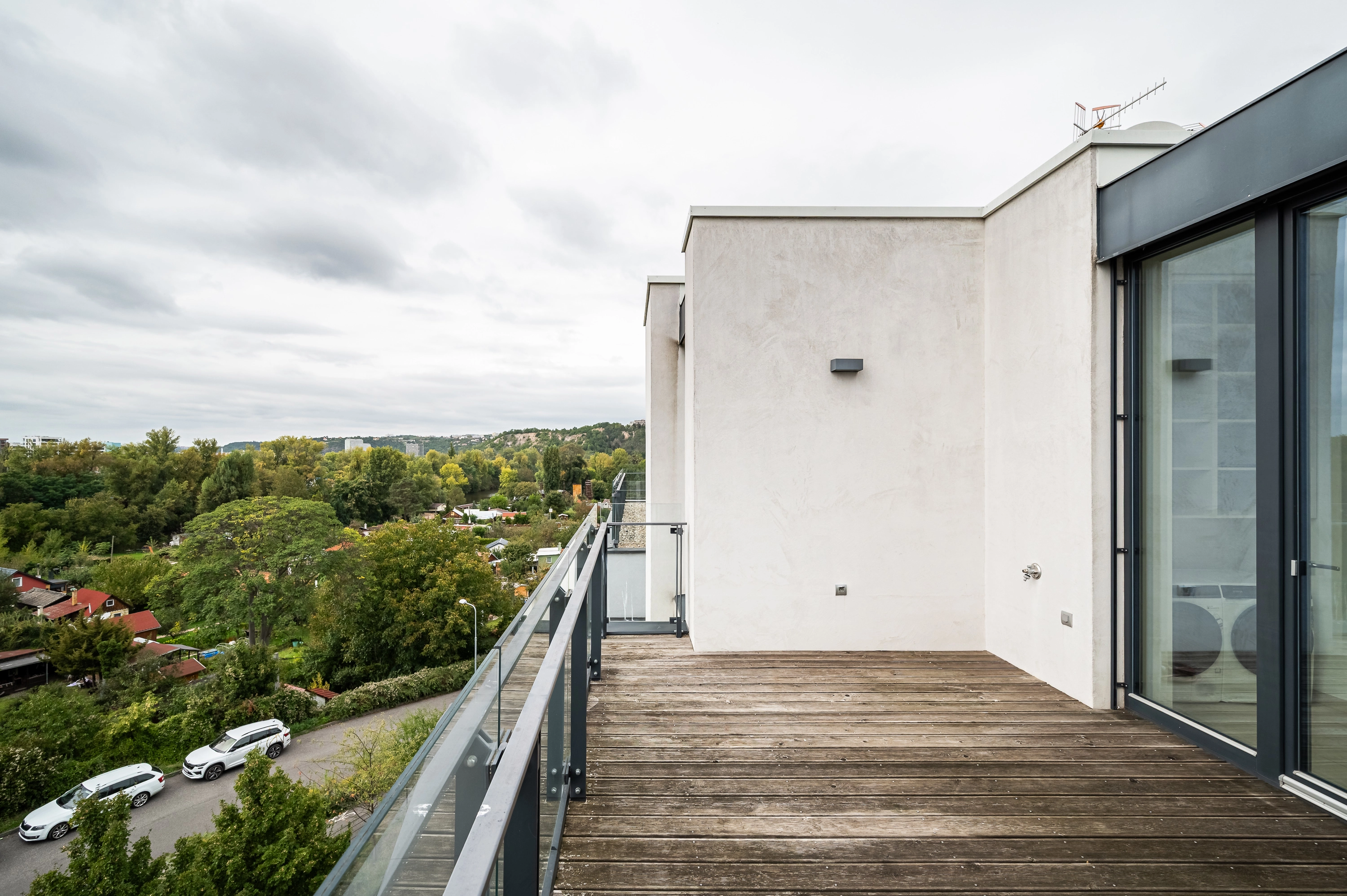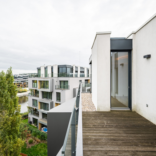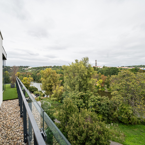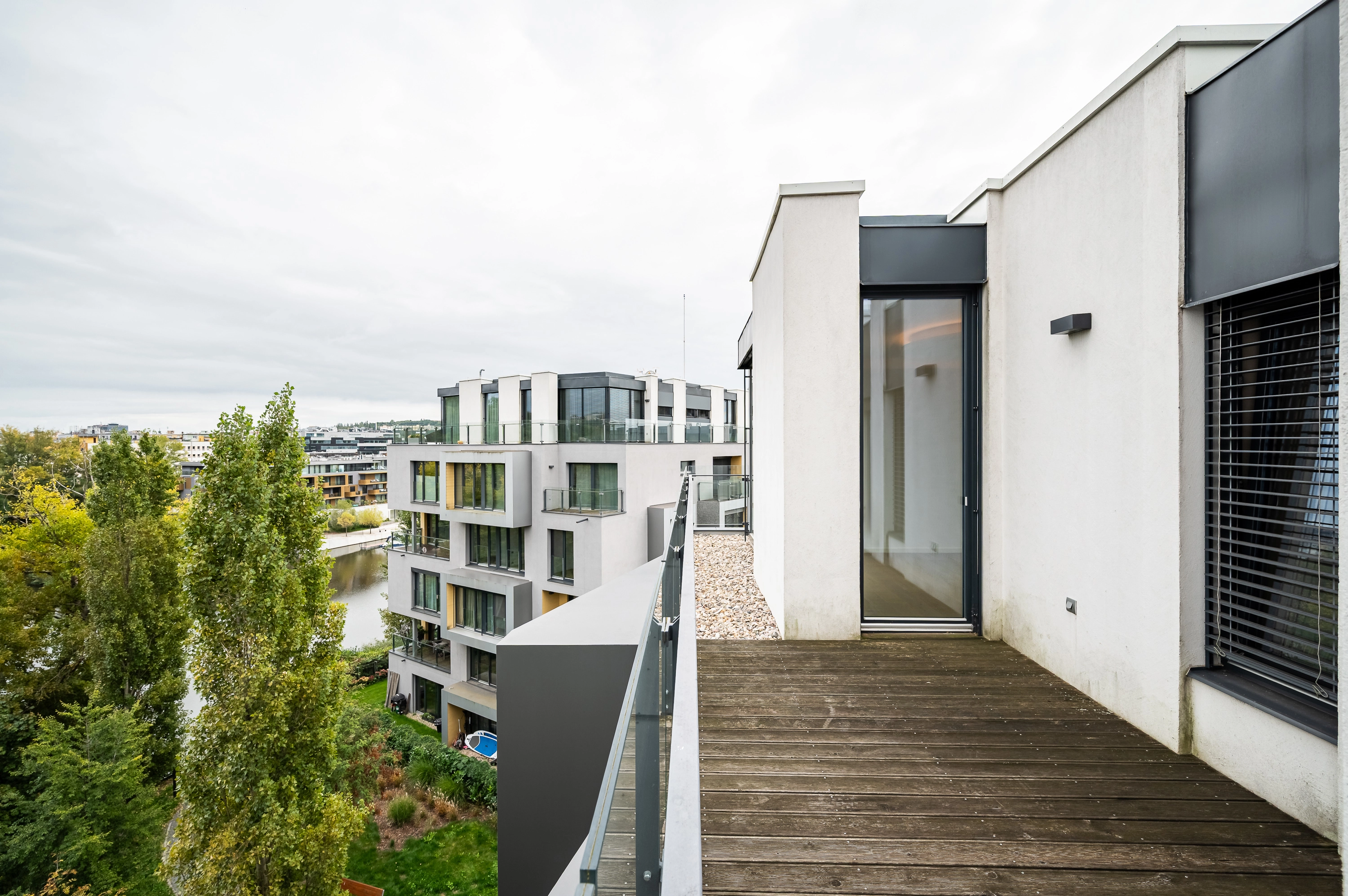 Nabízím k prodeji exkluzivní byt v prestižní Rezidenci Dock. Tato bytová jednotka dispozičně 5+kk se nachází na horním podlaží bytového domu a má 360° výhled díky terasám o velikosti 110m², podél celého bytu.