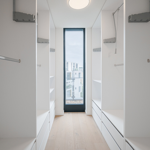 V bytové jednotce se nachází prostorná předsíň s vestavěným úložným prostorem, obývací pokoj s kuchyní s přímým vstupem na terasu. První ložnice s koupelnou je situována na východní stranu. Druhá ložnice, taktéž s orientací na východní stranu a s koupelnou má navíc šatnu walk in. Třetí a čtvrtá ložnice se nachází v zadní části bytu s orientací na jihovýchodní stranu, k těmto ložnicím taktéž náleží koupelna. Ze všech pokojů je přístup na terasu.