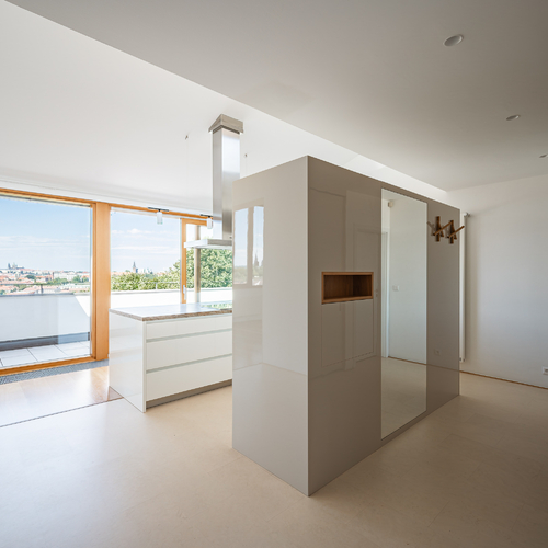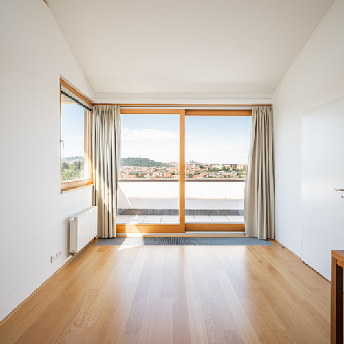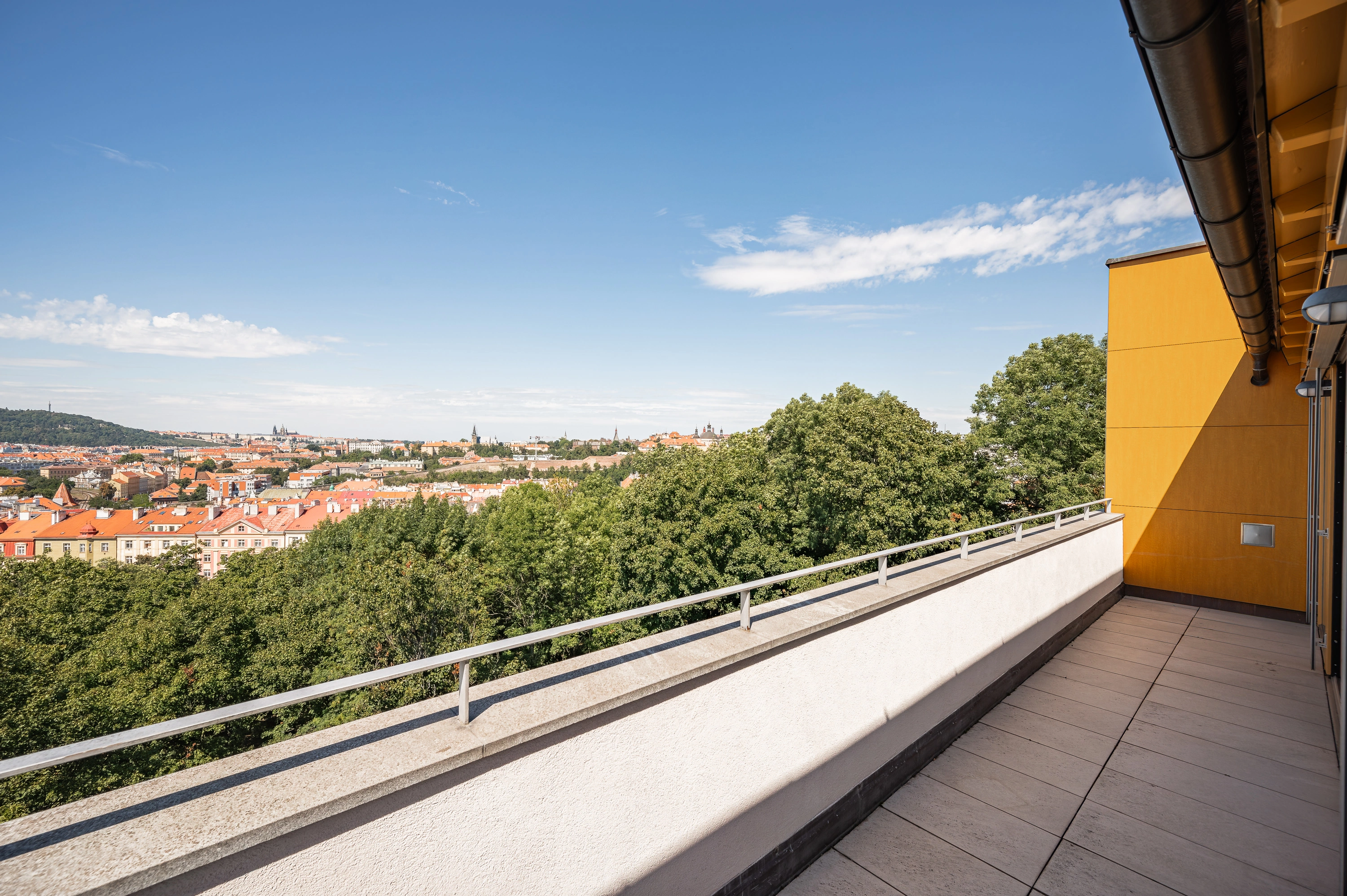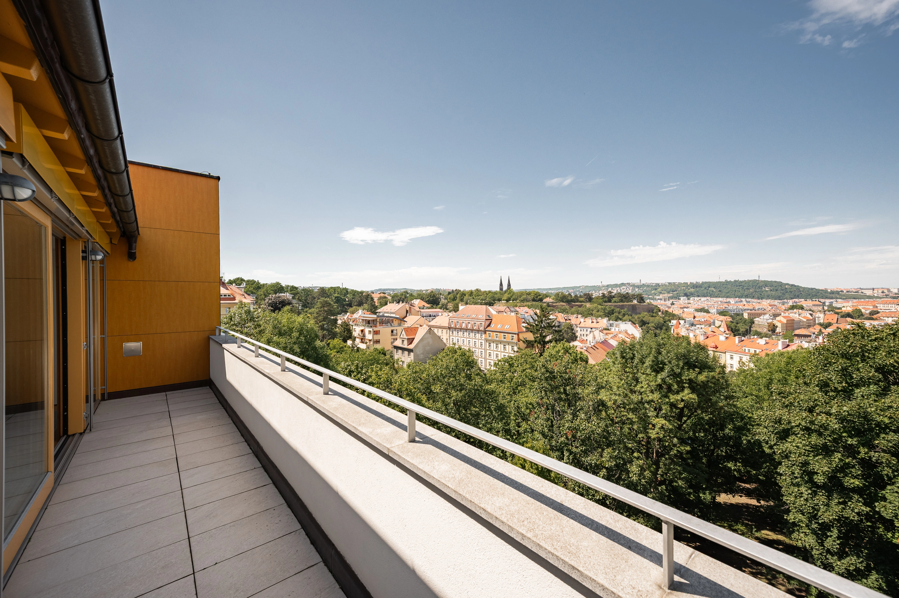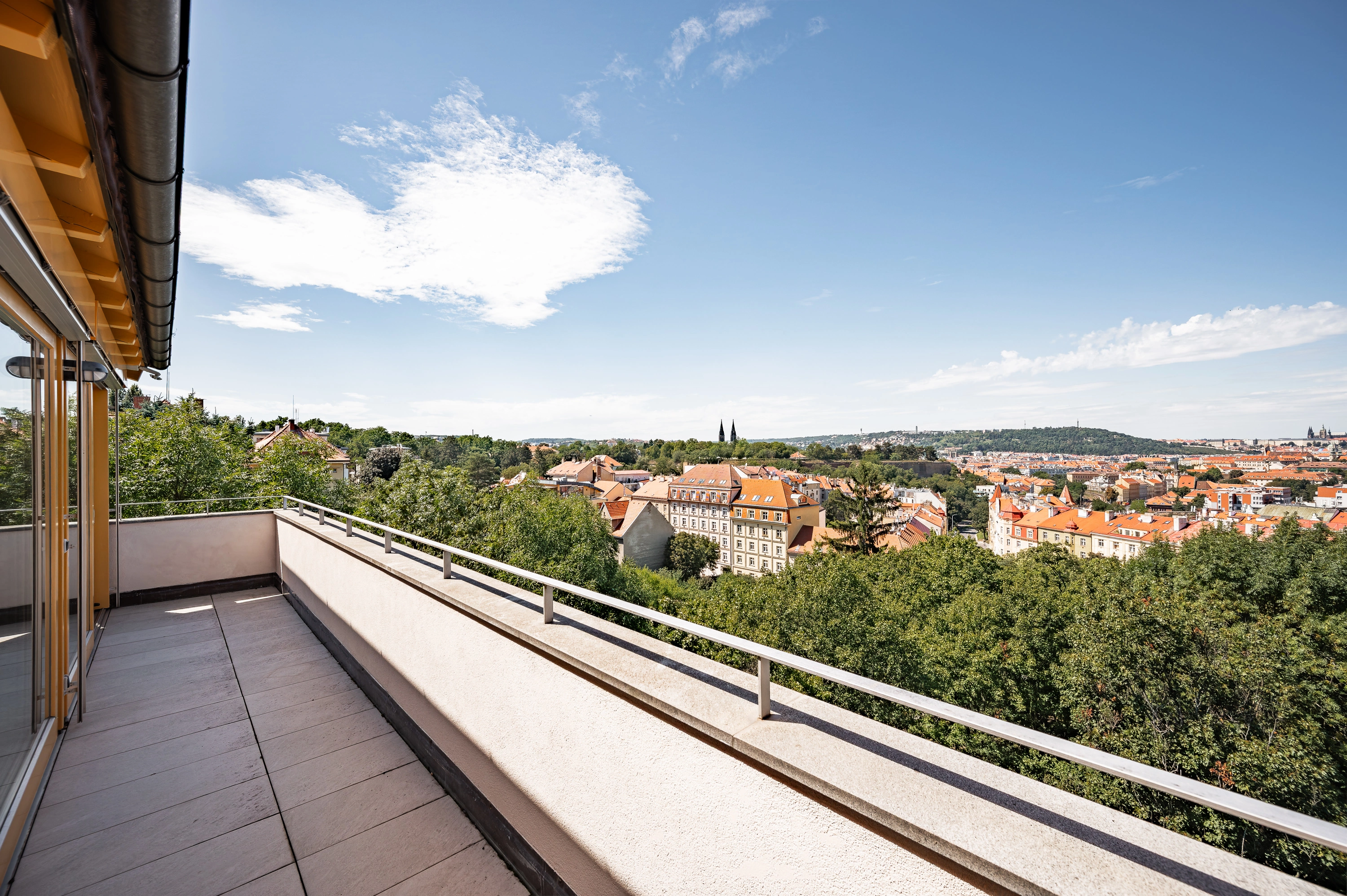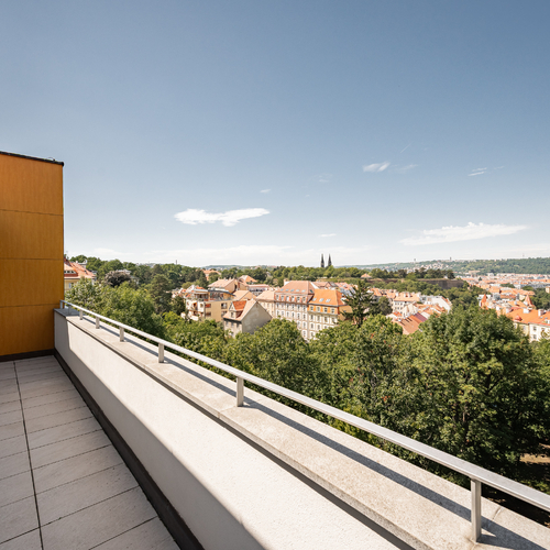 Nabízím k pronájmu prostorný, částečně vybavený a klimatizovaný byt s dvěma koupelnami, dvěma terasami a nádhernými výhledy na historické centrum Prahy, včetně Pražského hradu, Petřína a Vyšehradu. Byt se nachází ve 3. – nejvyšším – patře uzavřeného rezidenčního komplexu s parkováním a soukromou zahradou o rozloze 5000 m². Budova stojí v klidné vilové oblasti, jen pár kroků od stanice metra Vyšehrad a vstupu do vyšehradského parku, s kompletní občanskou vybaveností v blízkém okolí. |