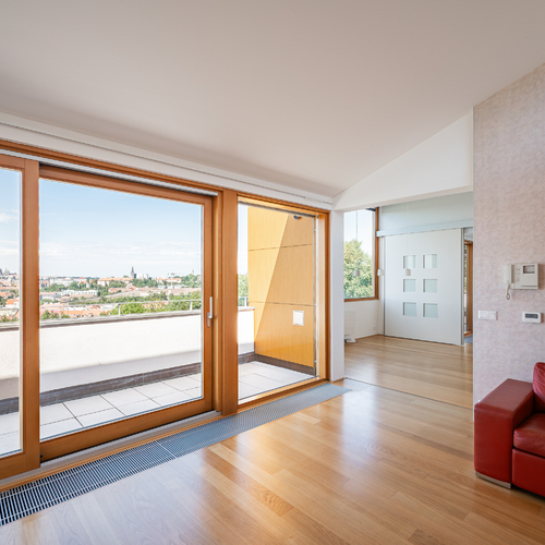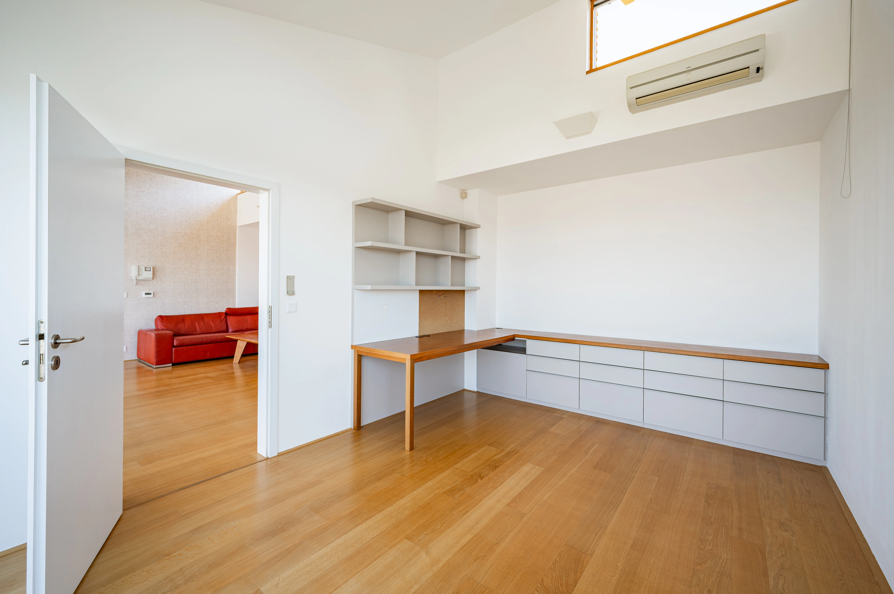 Výbava bytu: klimatizace, dřevěné podlahy, dlažba, vinyl v chodbě, bezpečnostní vstupní dveře, množství vestavěných skříní a úložných prostor, elektricky ovládané předokenní žaluzie, plynové topení, podlahové vytápění v koupelnách, spotřebiče Miele (myčka, indukční deska, mikrovlnná trouba), plynový kotel, sklep, kamerový systém v domě, vstupy na čip, výtah s bezbariérovým přístupem.