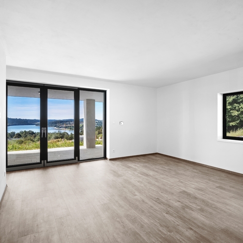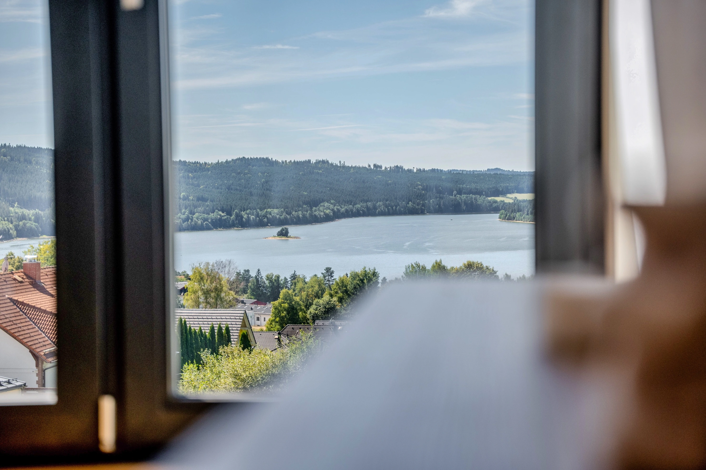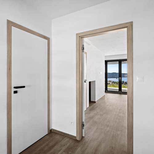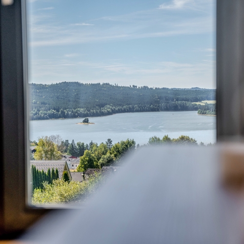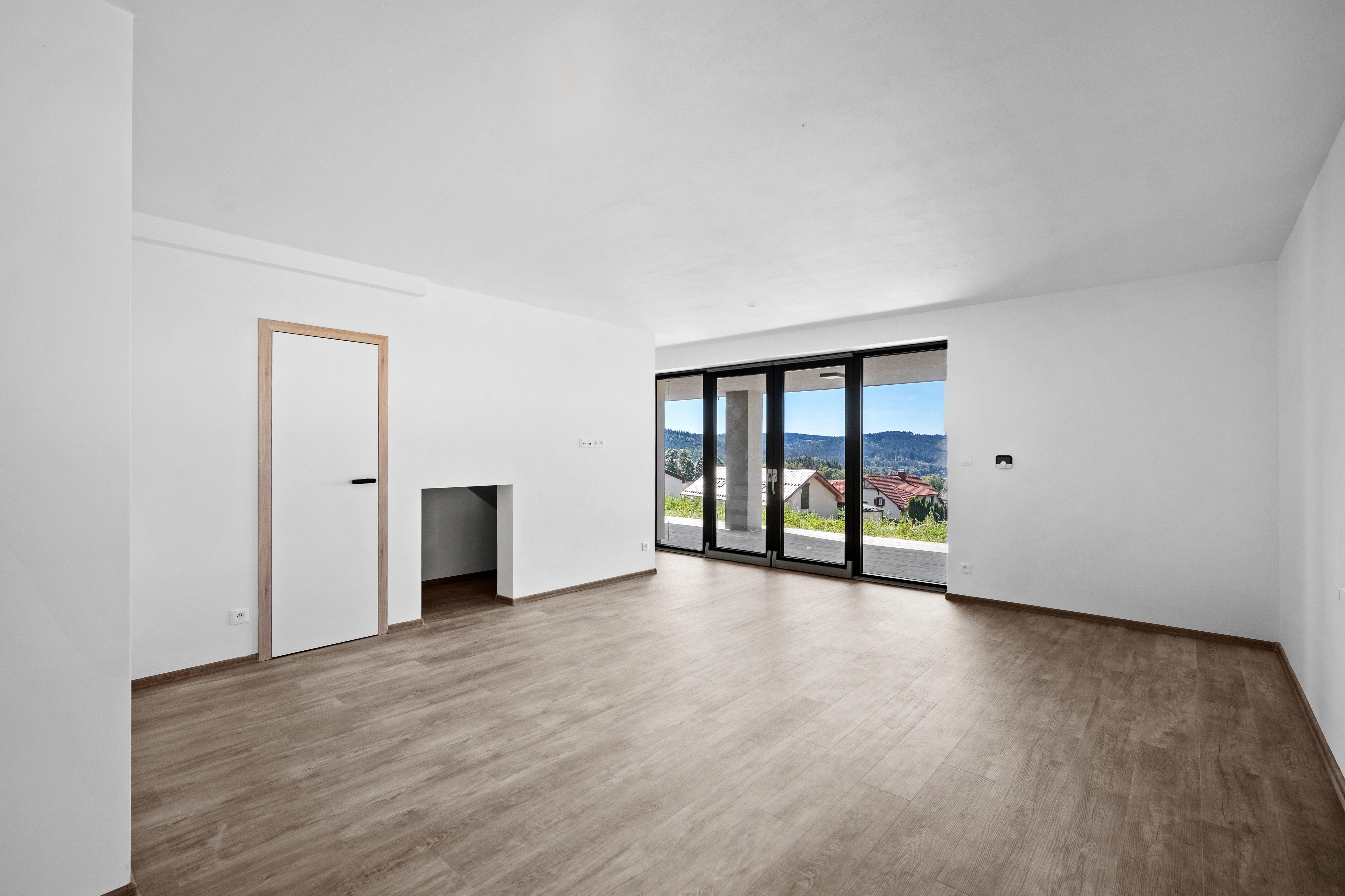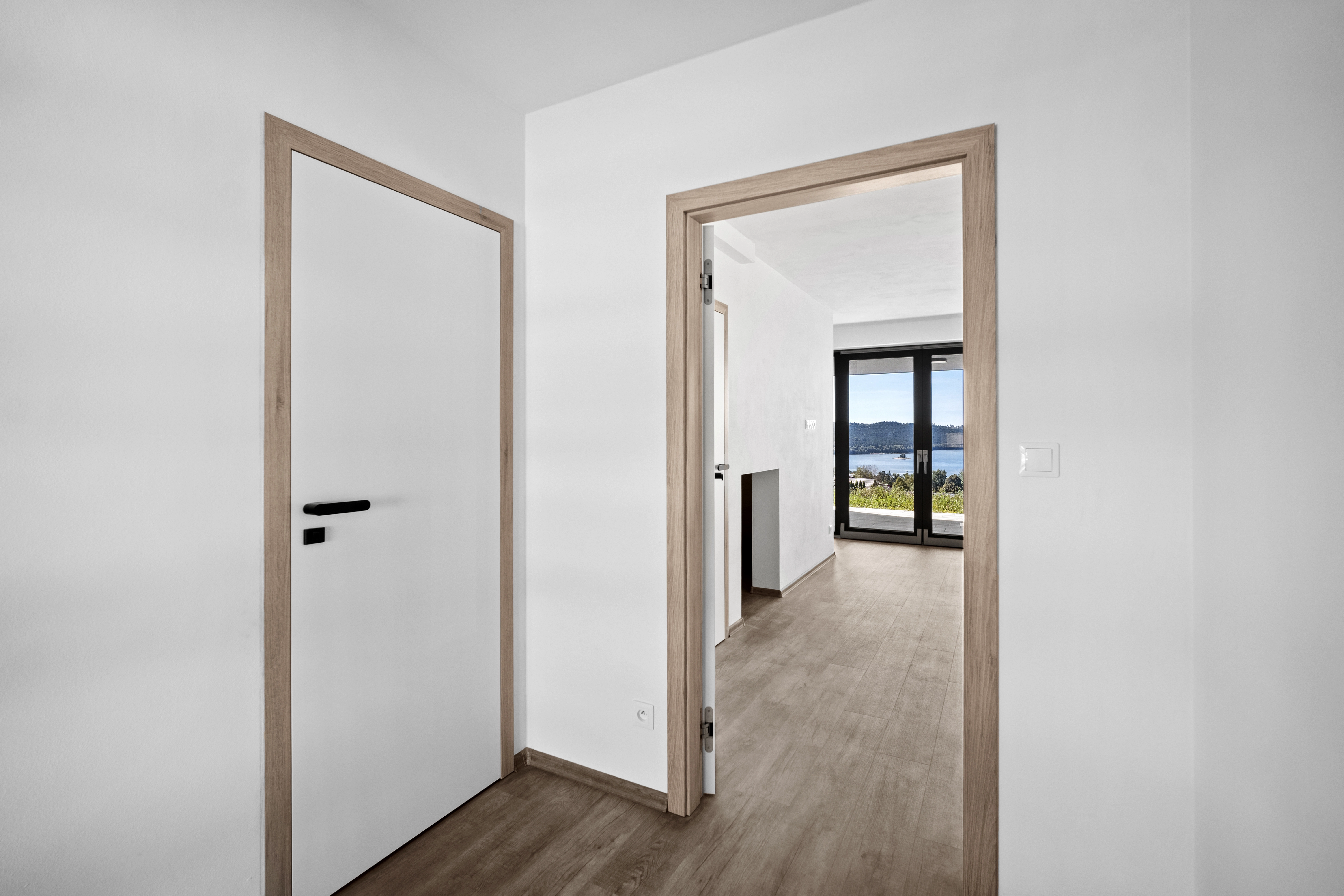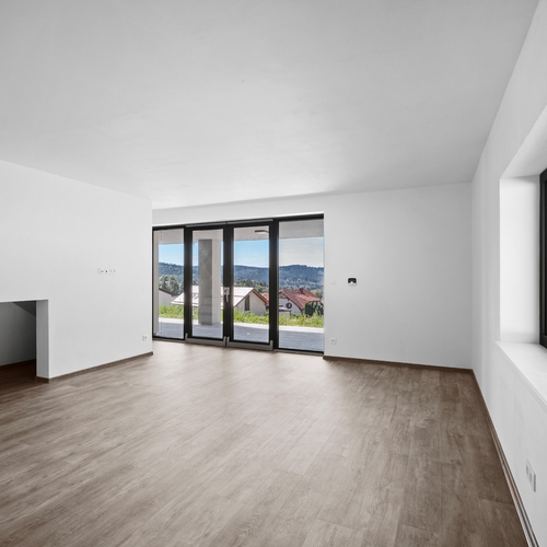 Nabízím k prodeji půldům s nádherným výhledem na vodní nádrž Lipno a dostupností od Mariny v pěší vzdálenosti. Řadový dům dispozičně 3+kk s podlahovou plochou 115,3 m2 se nachází v kopci od přilehlého centra volnočasových aktivit a maximální občanskou vybaveností Lipna Nad Vltavou. Vysoký standard domu zahrnuje dřevěná okna v antracitové barvě včetně HS portálů, s trojskly. Smart dálkové otevírání hlavních dveří (protipožární) pomocí číselného kódu. Kvalitní vinylové podlahy v dekoru přírodního dřeva. V koupelně a na toaletě, značky Geberit, je položená keramická rektifikovaná dlažba doplněná keramickými obklady. Dveře jsou spolu obložkovými zárubněmi od renomované značky SAPELI.